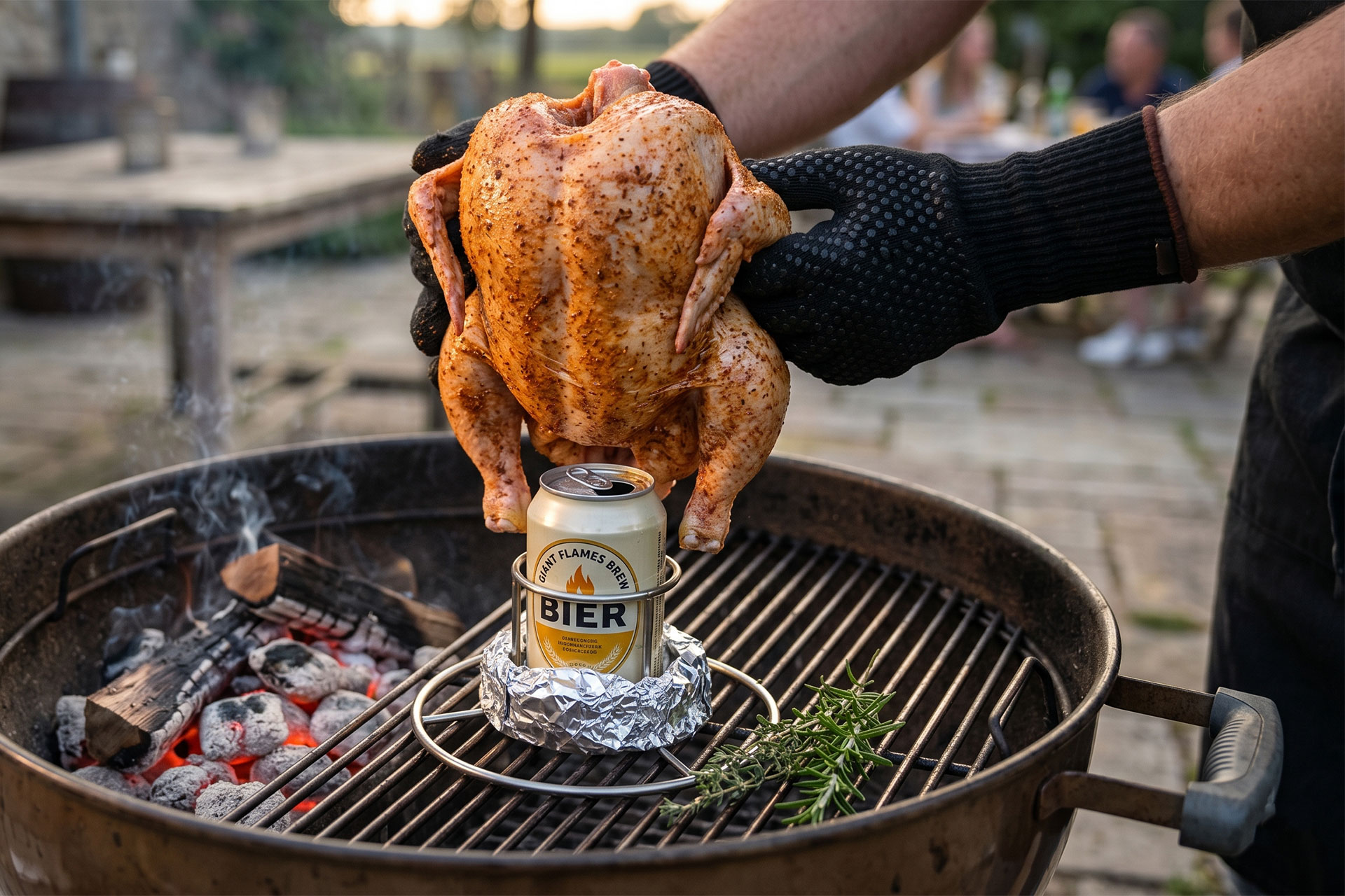 Beer can chicken deluxe – feestelijk, vurig en bomvol smaak.