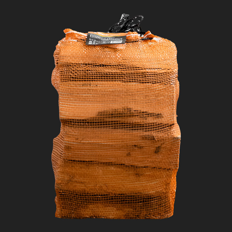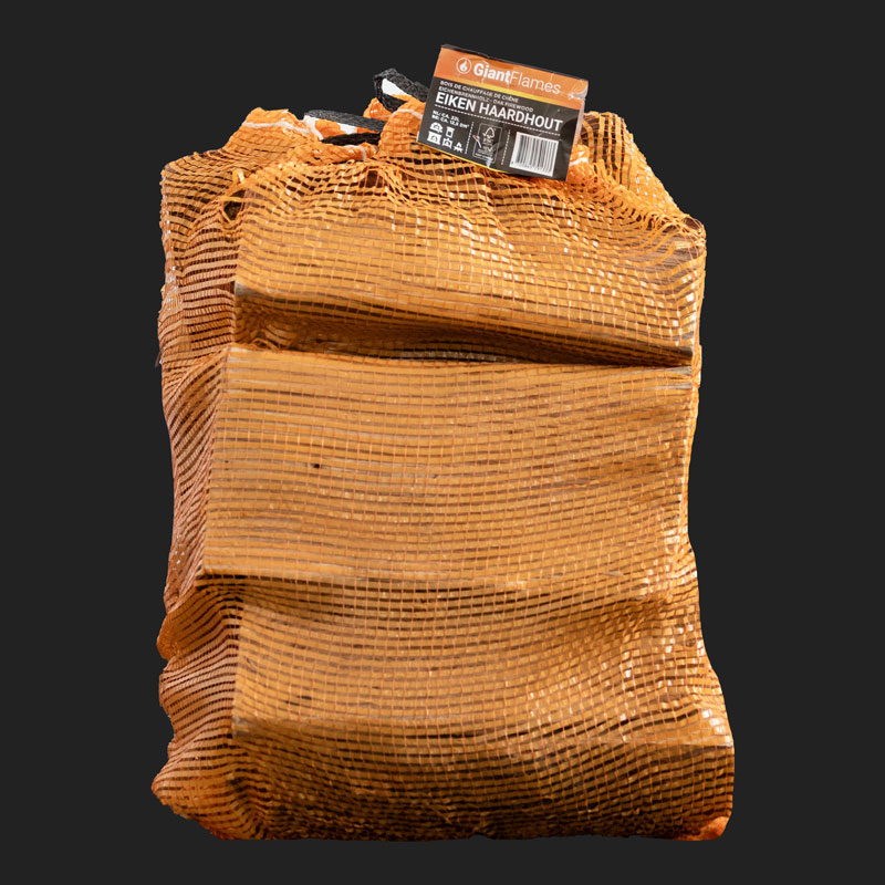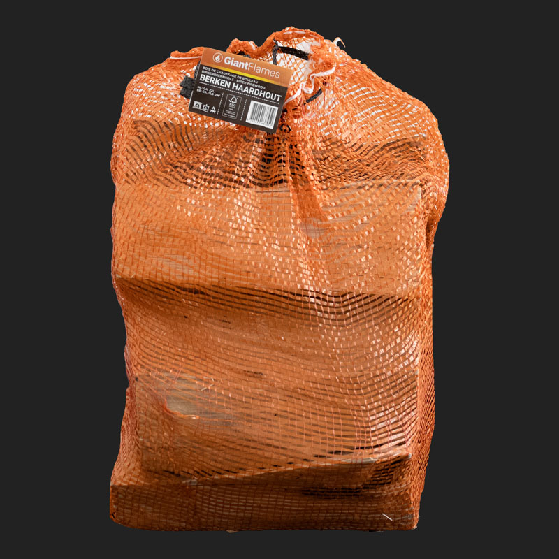 Giant Flames haardhout in netzak is ovengedroogd en direct klaar voor gebruik. Het hout is zorgvuldig geselecteerd op soort, vochtgehalte en formaat. Verkrijgbaar in onder andere elzen, berken, eiken en essen. Elk soort heeft zijn eigen verbrandingseigenschappen. De netzakken zijn stevig, goed ventilerend en makkelijk te hanteren. Ideaal voor haard, kachel of vuurkorf.
