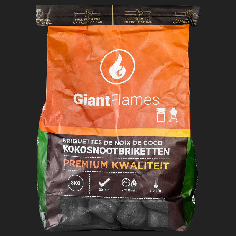 Kokosbriketten zijn gemaakt van samengeperste kokosnootschalen, een restproduct uit de cosmetica- en voedselindustrie. Deze briketten branden extreem lang, produceren weinig rook en zorgen voor een stabiele, hoge temperatuur. Ideaal voor lange sessies, slow cooking of professioneel gebruik waar constante hitte vereist is.