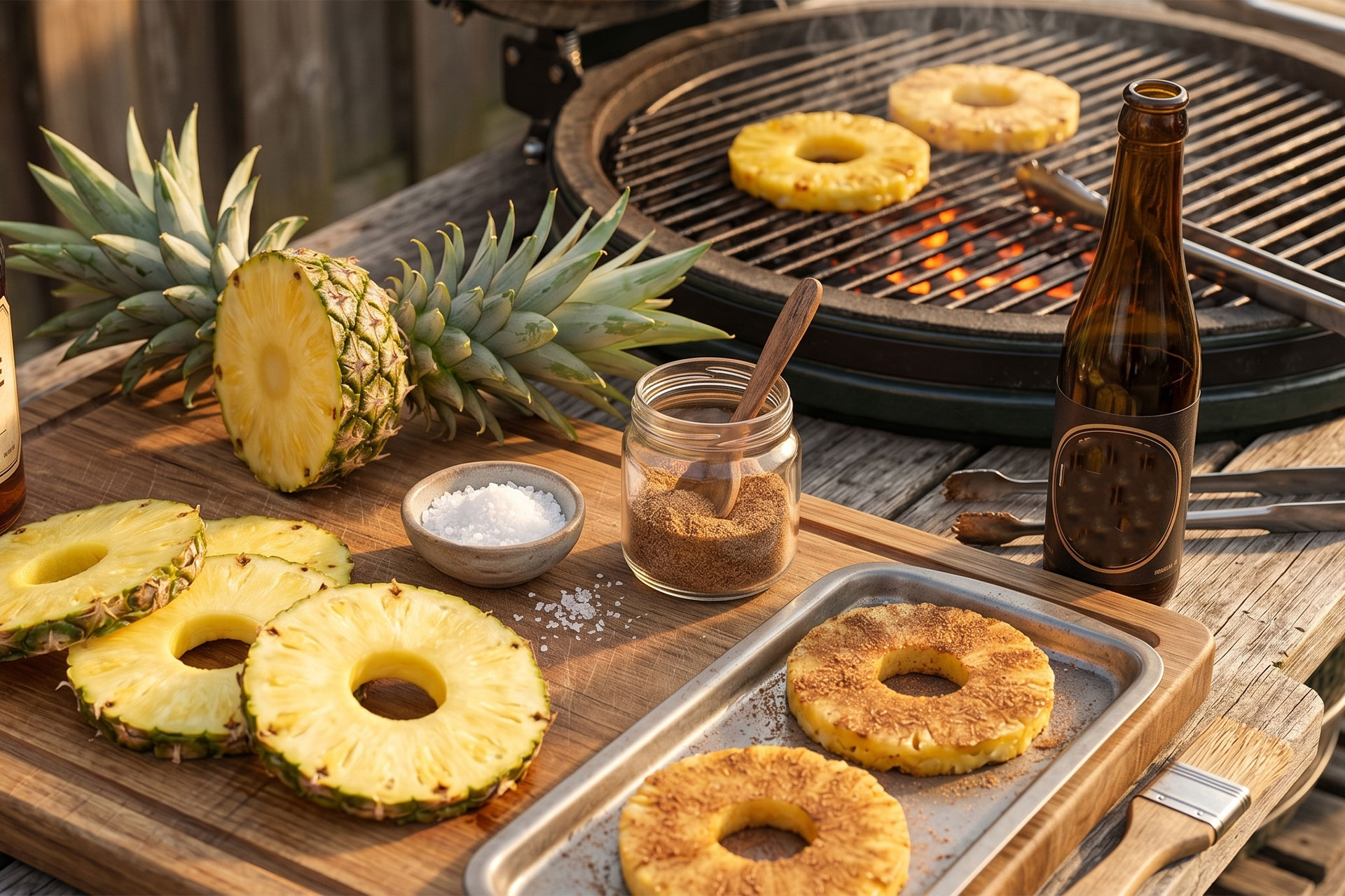 Gegrilde ananas, tropisch, zoet en met een vuurtje eronder.