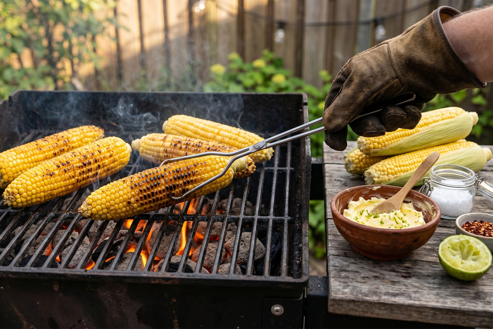 Gegrilde maiskolven met limoenboter