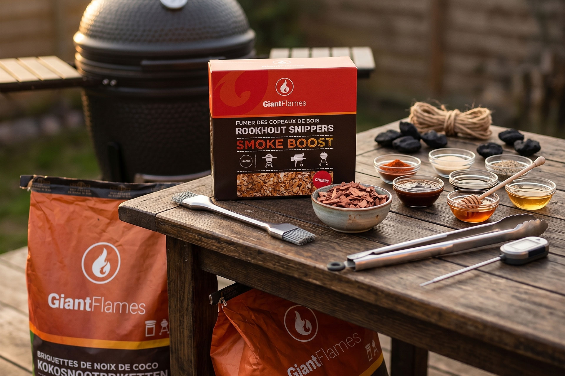- Eventueel rookhout (kers voor zoete rooksmaak)